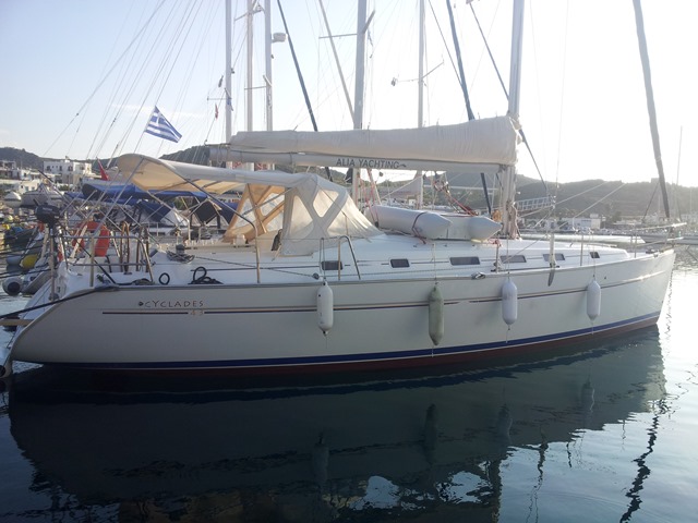 Below is a picture of the yacht that a team of racers were using for training. They were six men of various ages who dressed in the same black and red shirts and jackets.