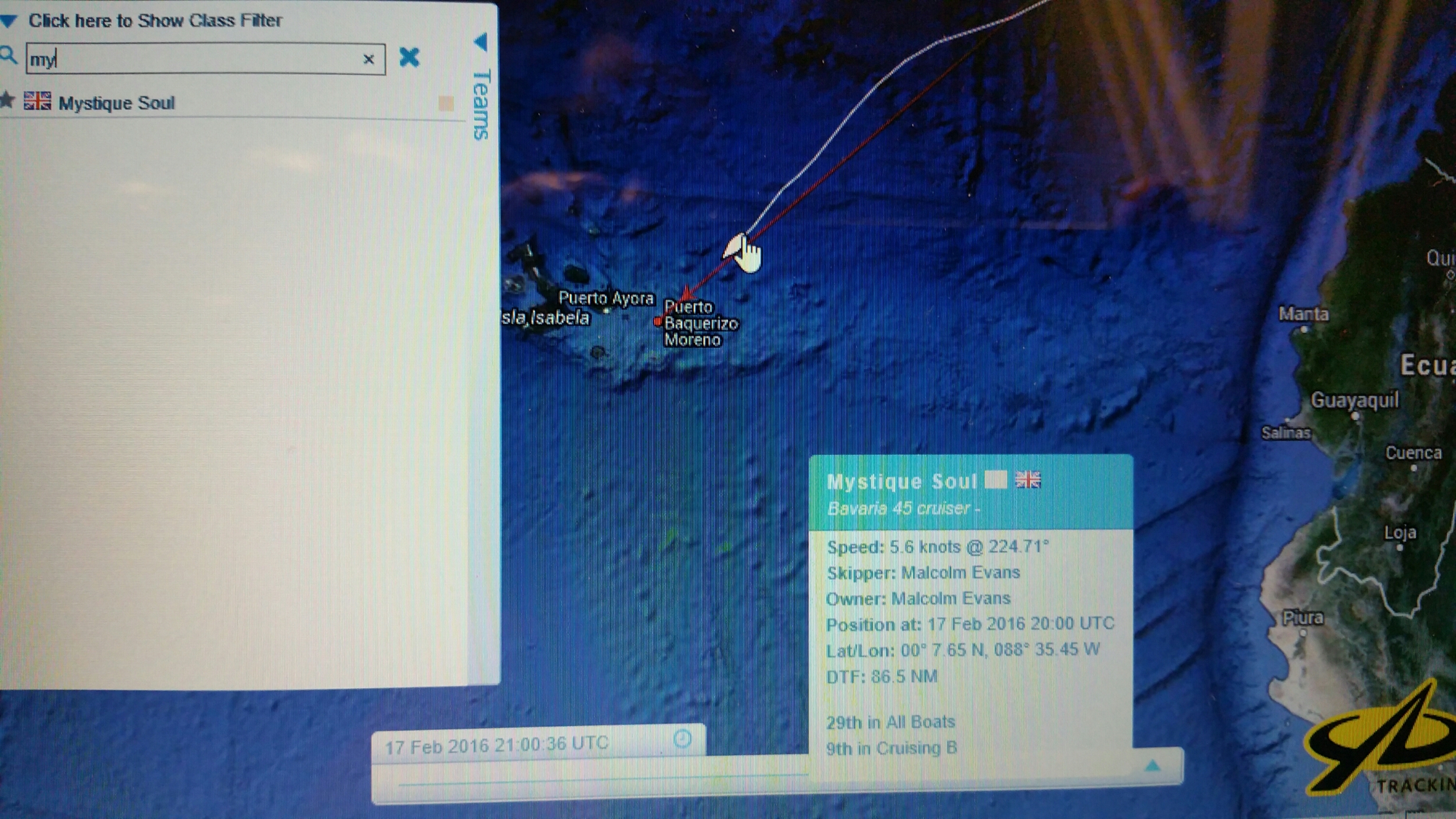Wednesday 17 February 2016: The lead boats are in harbour now. Mystique Soul should be there tomorrow.